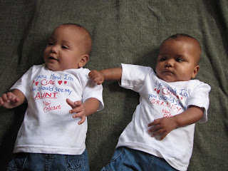 Today we stayed around the house almost all day. We took naps, played on the floor....the usual! Kristin came over to visit us and so did her aunt and uncle. They have known Mommy since she was a little girl so they were happy to meet us. We went with Mommy and Granny to Applebee's for dinner and had a fun time watching all the people and sitting at the table. We don't really have much else to say but we wanted to be sure to wish Aunt Kristen good luck on her big test tomorrow. We look forward to getting more time with you next week after you're back from the test, Aunt Kristen! Oh, and we love you :)